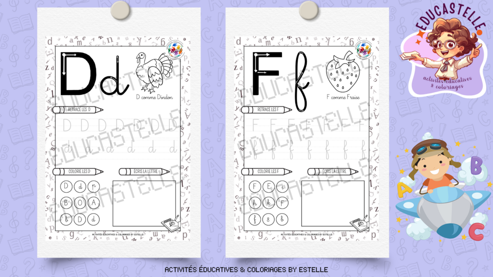 ๐ Chaque lettre est associรฉe ร un petit dessin qui peut รชtre colorier.